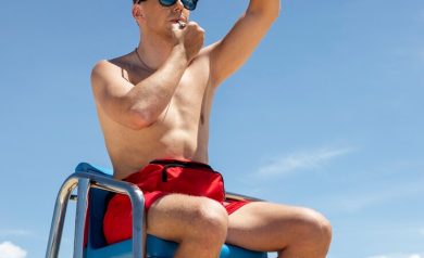 Mijn wekelijkse baantjes heb ik weer getrokken in het overdekte zwembad en tevreden klim ik uit het water en sla de handdoek om me heen. Voordat ik de zwemhal verlaat zwaai ik gewoontegetrouw naar de badjuf in haar badmeesterstoel aan de andere kant van het bassin. Die geste is een ge