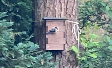 Met het mooie weer van de afgelopen dagen is het goed toeven in de tuin. Ik heb een prachtig uitzicht op een nestkastje waar twee pimpelmezen hun eieren hebben uitgebroed. Vader en moeder pimpelmees vliegen af en aan met rupsjes. Wat een drukte, wat een zorg voor de jonkies. Naarmate